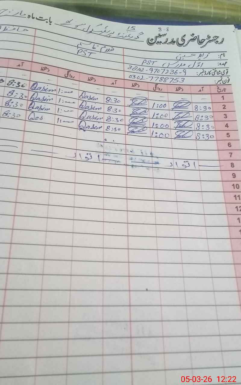 | Name: ZA**** HU**** Designation: (School Headmaster's/Headmistress's) ESE Phone/Cell Number: 03**** |