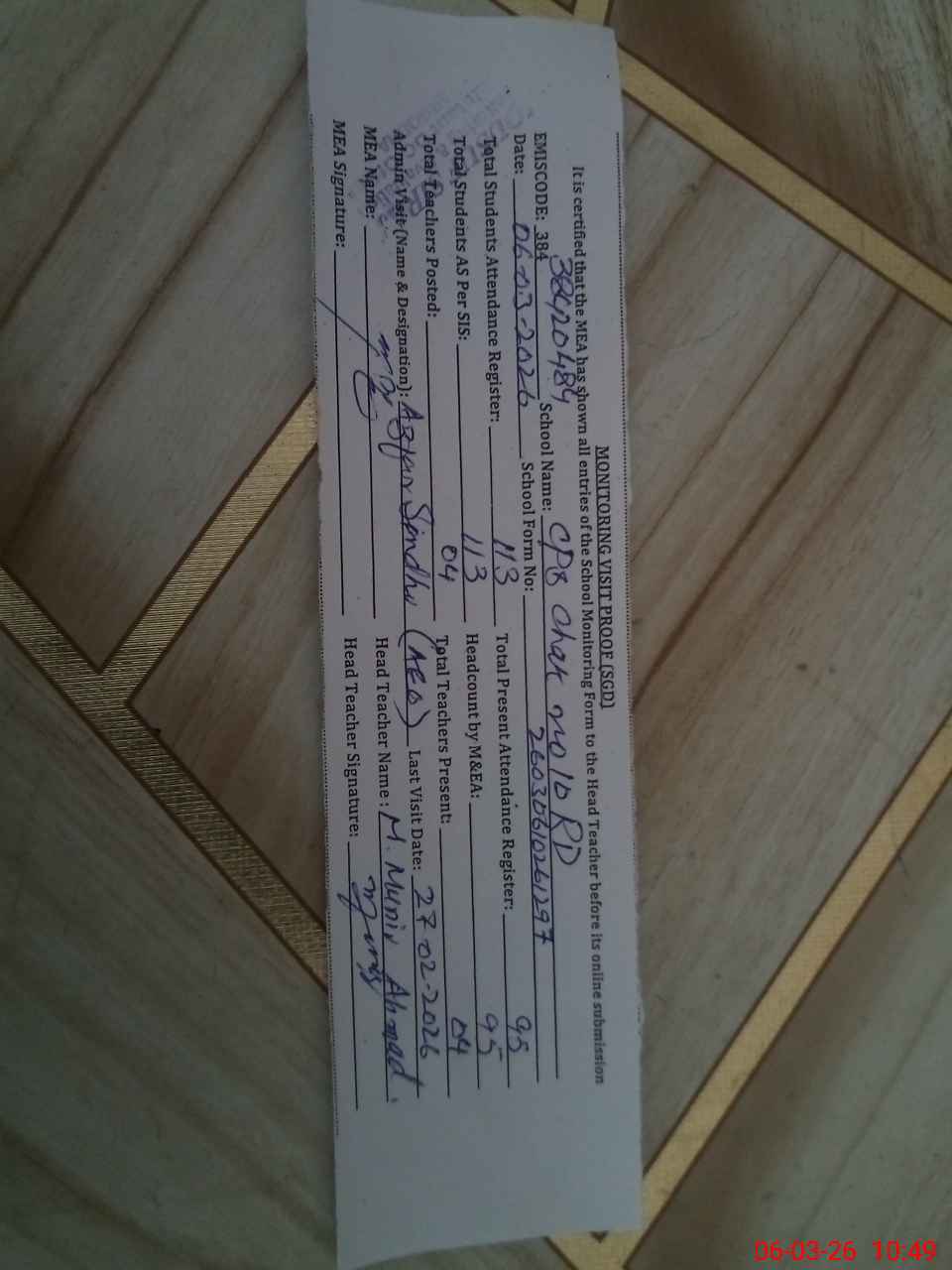 | EMIS Code: 38420484 | Name of School: GPS CHAK NO.10 REMOUNT DEPOT | |||