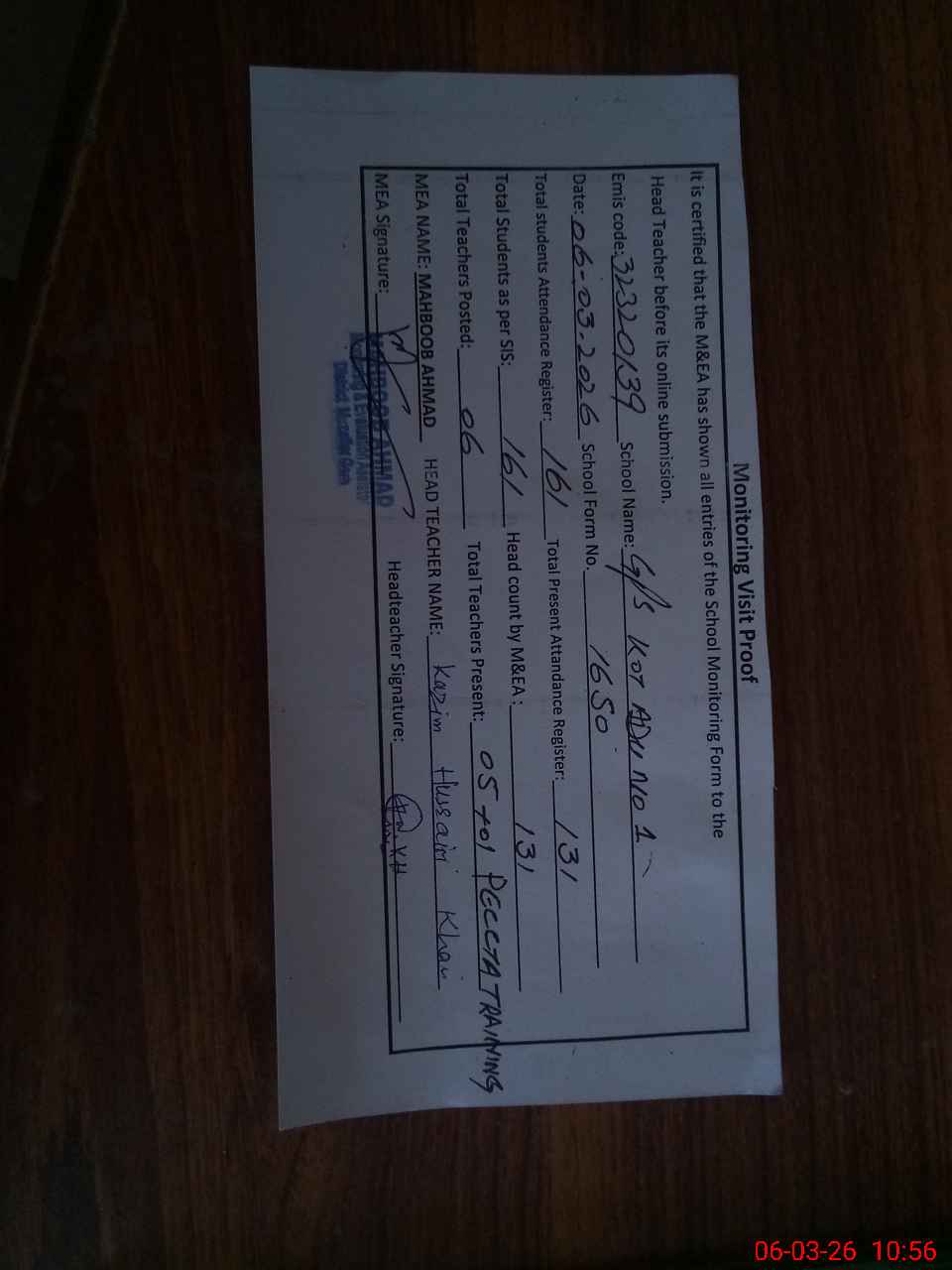| EMIS Code: 32320139 | Name of School: GPS KOT ADU NO. 1 | |||