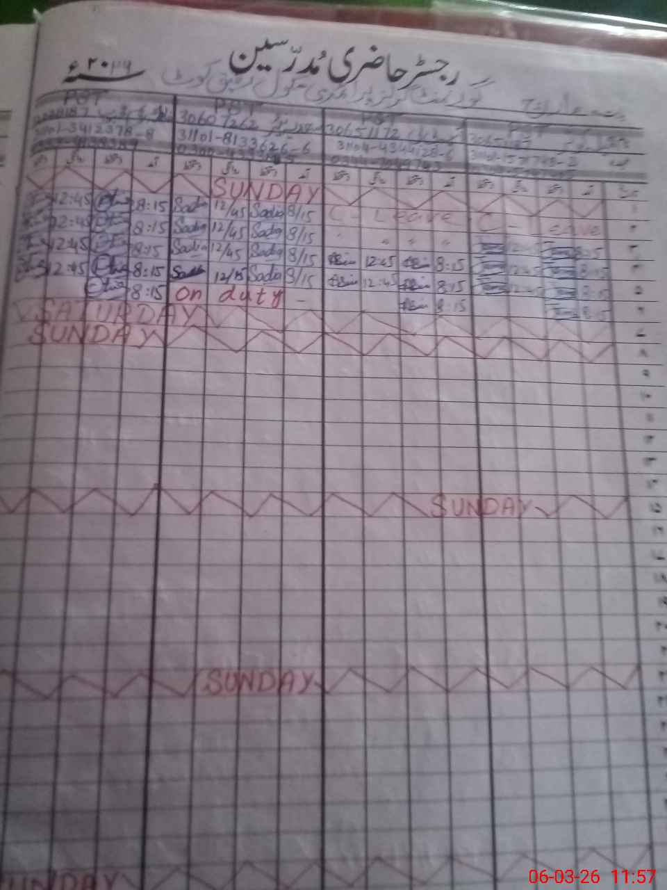 | 31**** | Sa**** Na**** | PST Arts | Regular | 0 | 0 | 0 | 0 | 0 | 0 | 0 | 0 | 0 | Exam Duty |