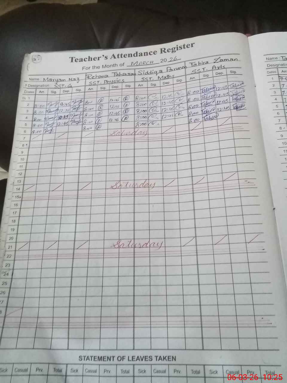 | Leave | Duty | Absent | Maternity | Medical | Ex- Pak |