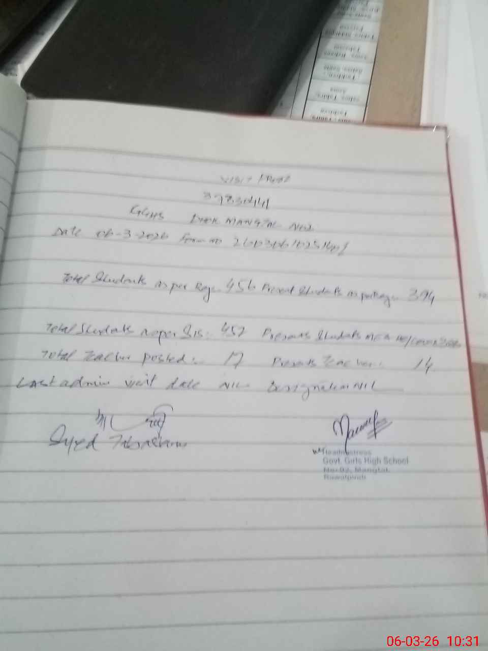 | Attendance Register | Head Teacher | MEA with School | Visit Proof |