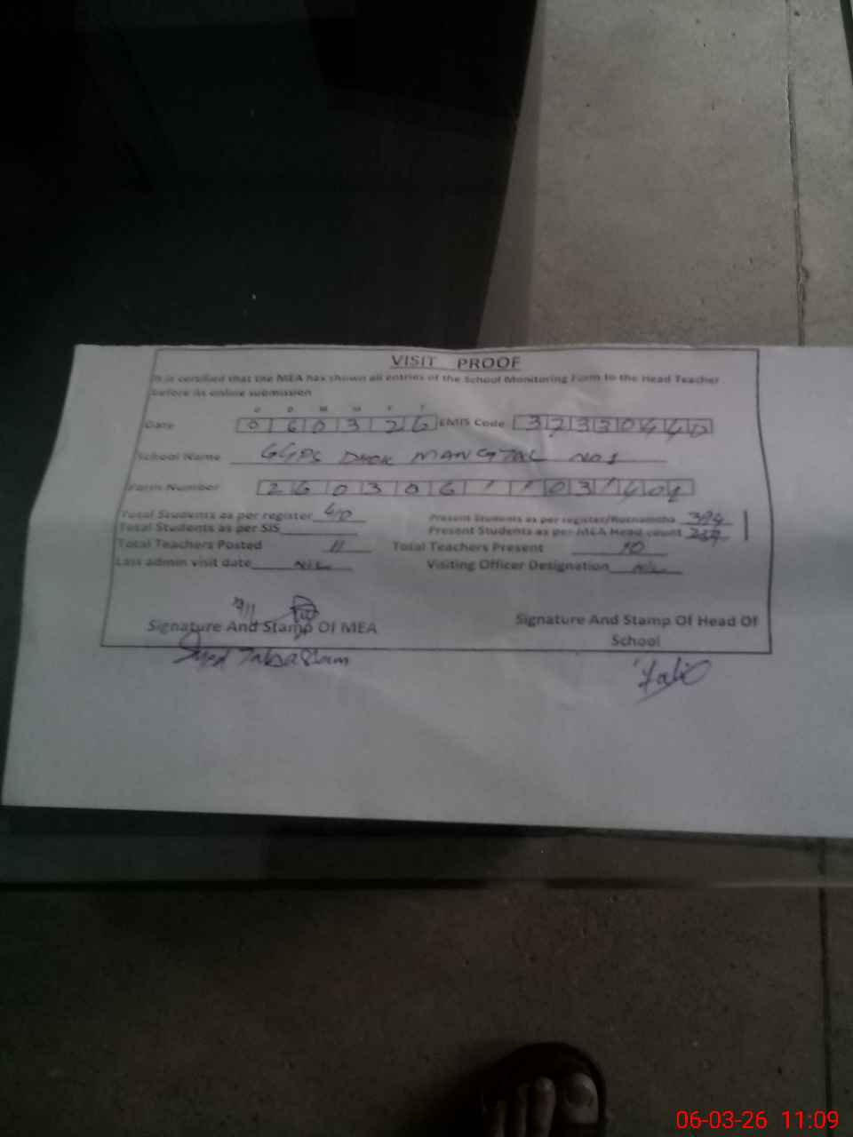 | Certified that this School was Inspected by the Undersigned MEA/DMO Today and the Information Stated Above is as Per Record. | |||||