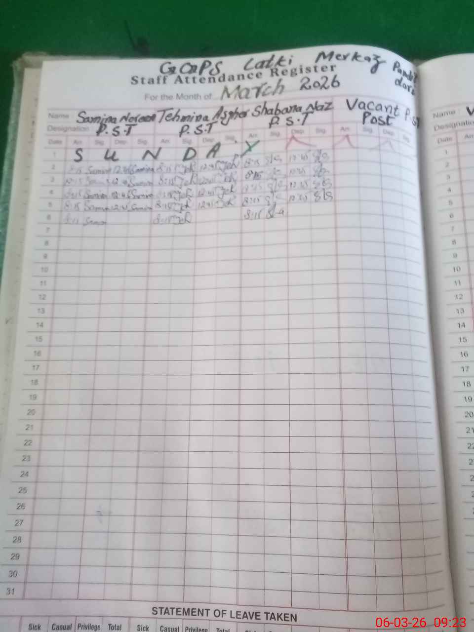 | Name: Sa**** No**** Designation: (School Headmaster's/Headmistress's) PST Phone/Cell Number: 03**** |