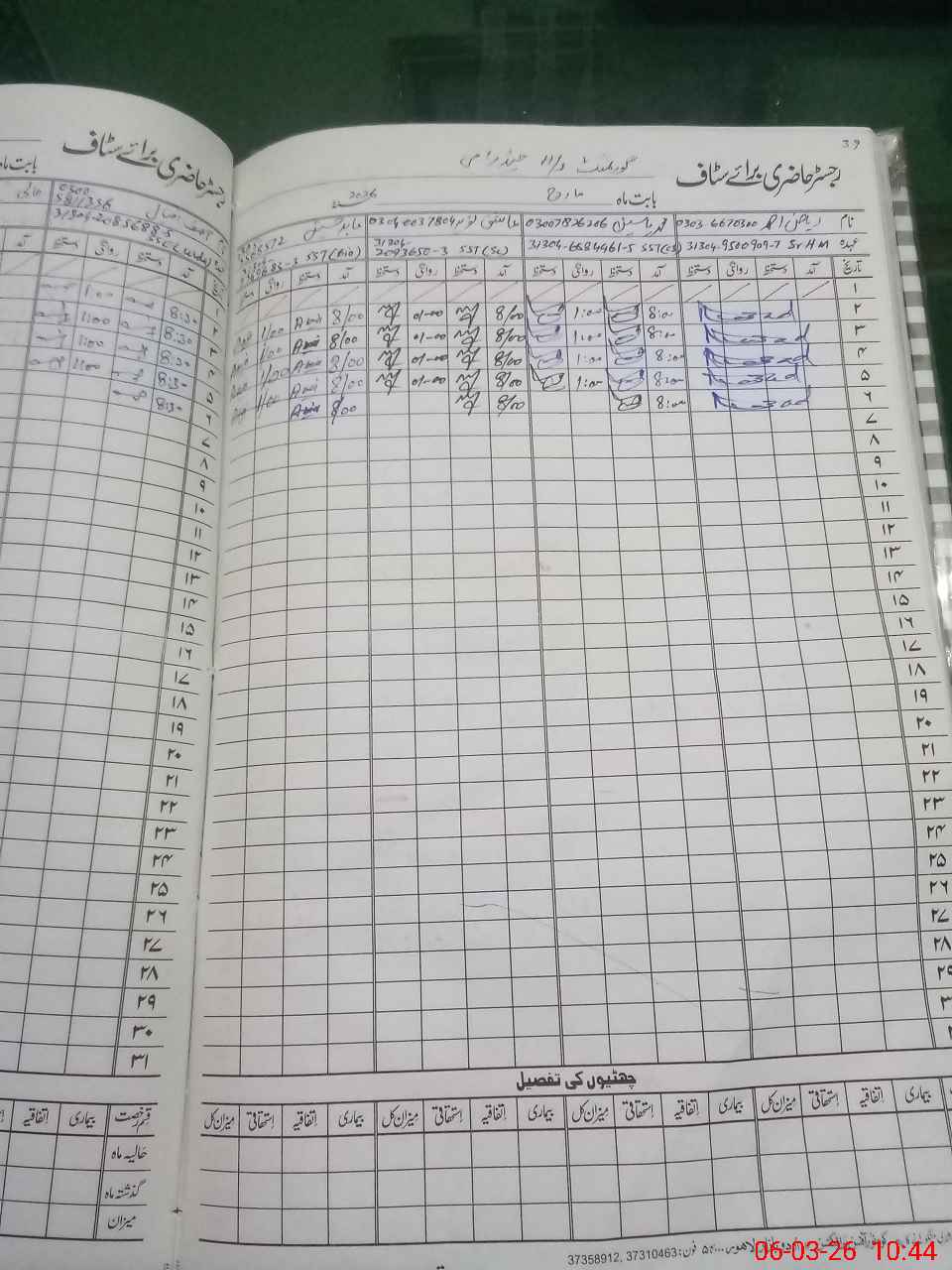 | CNIC | Full Name | Designation | R/C | Absence During Last Calender Month |