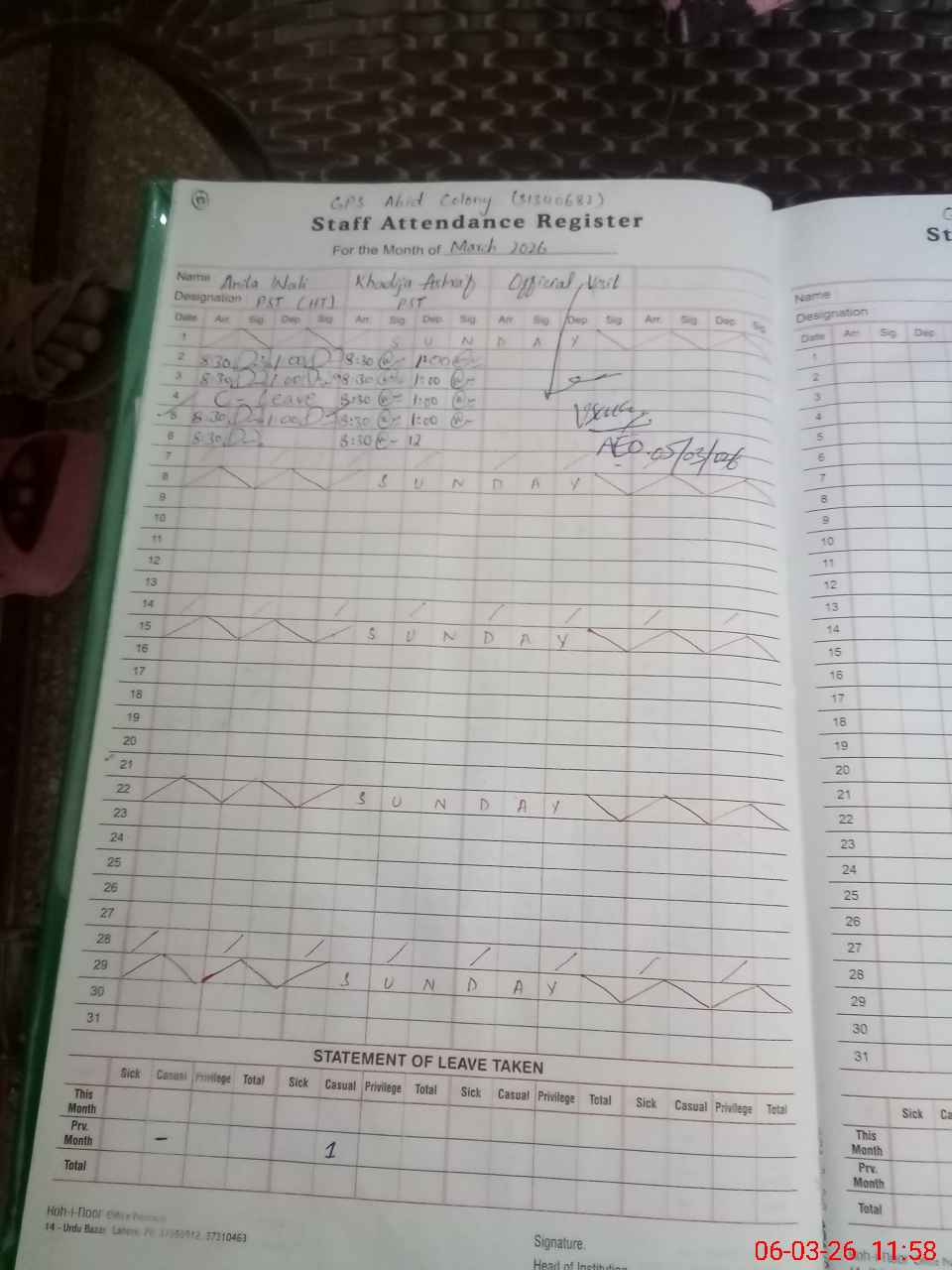| EMIS Code: 31340682 | Name of School: GPS ABID COLONY | |||