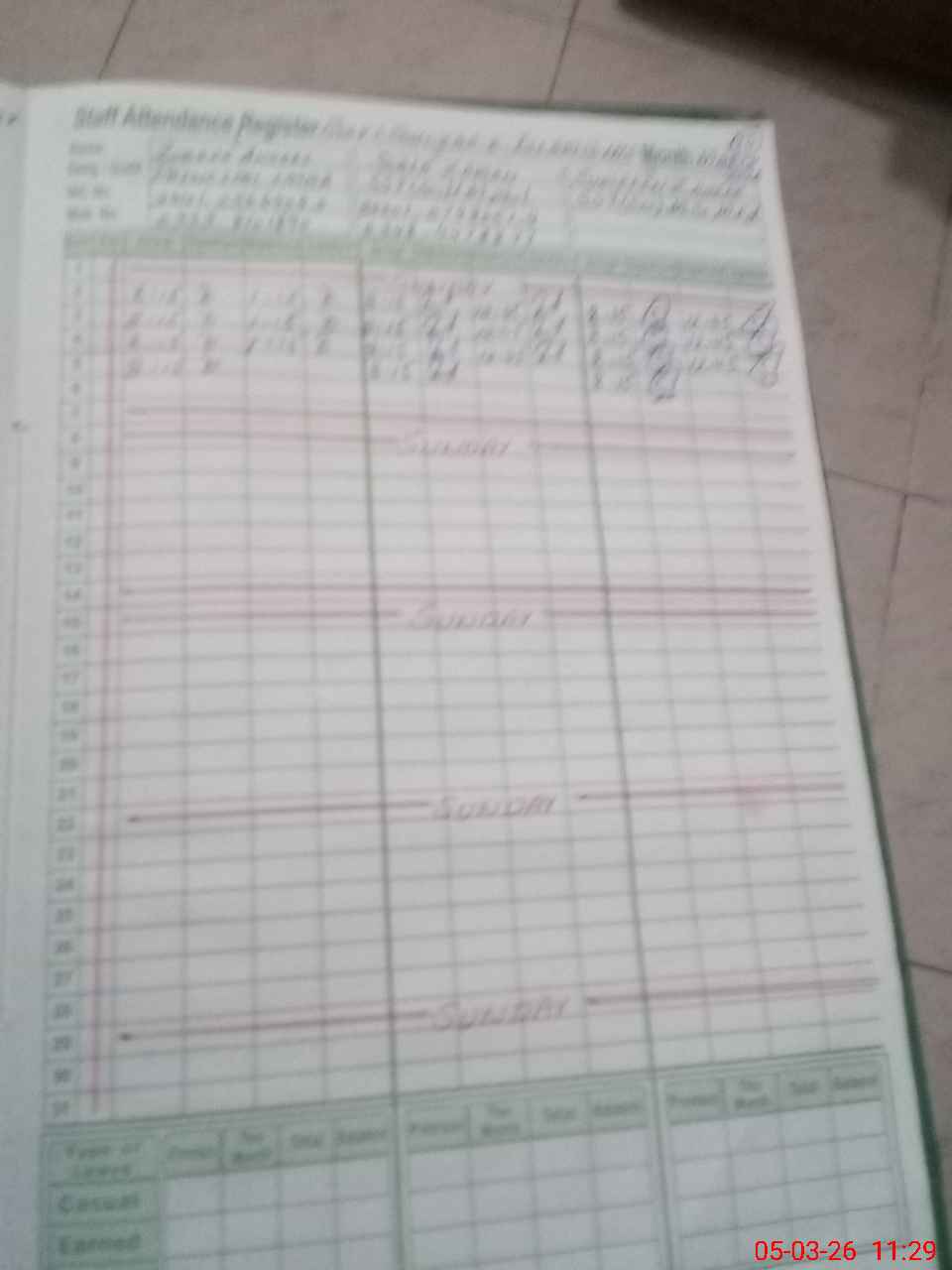 | CNIC | Full Name | Designation | R/C | Absence During Last Calender Month |
