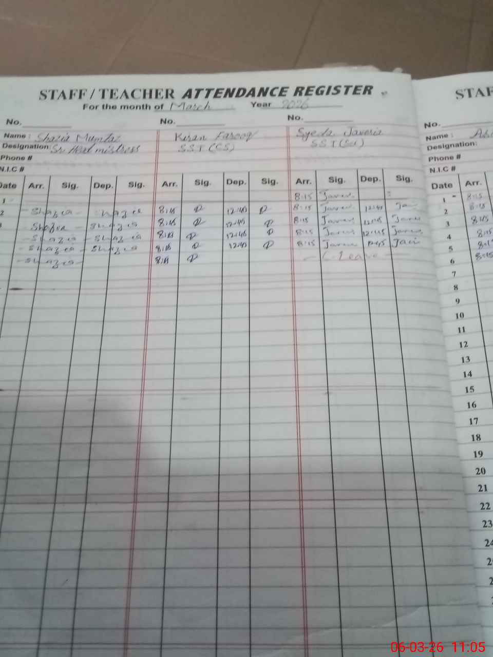 | 34**** | Su**** Be**** | EST Urdu | Regular | 0 | 0 | 0 | 0 | 0 | 0 | 0 | 0 | 0 | Exam Duty |
