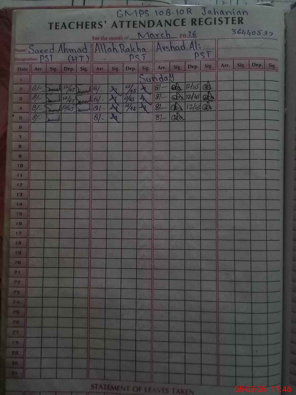 | Name: Sa**** Ah**** Designation: (School Headmaster's/Headmistress's) PST Phone/Cell Number: 03**** |