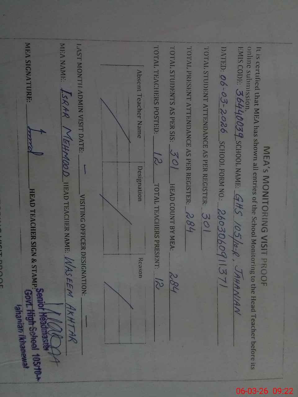 | EMIS Code: 36440039 | Name of School: GHS 105/10-R, JAHANIAN | |||