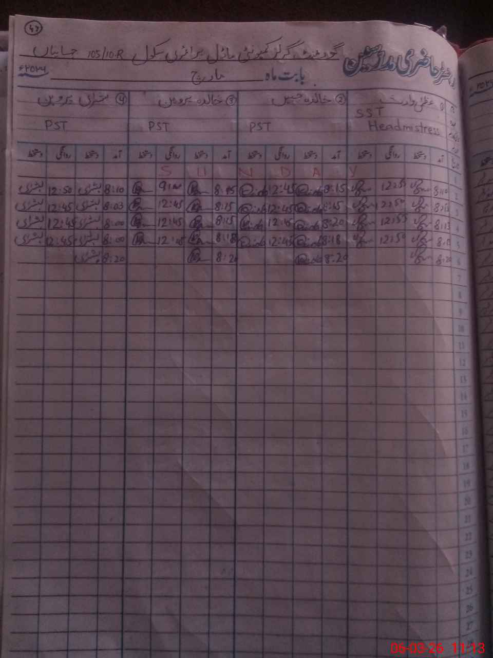 | Name: UZ**** WA**** Designation: (School Headmaster's/Headmistress's) S.S.T.(G) Phone/Cell Number: 03**** |