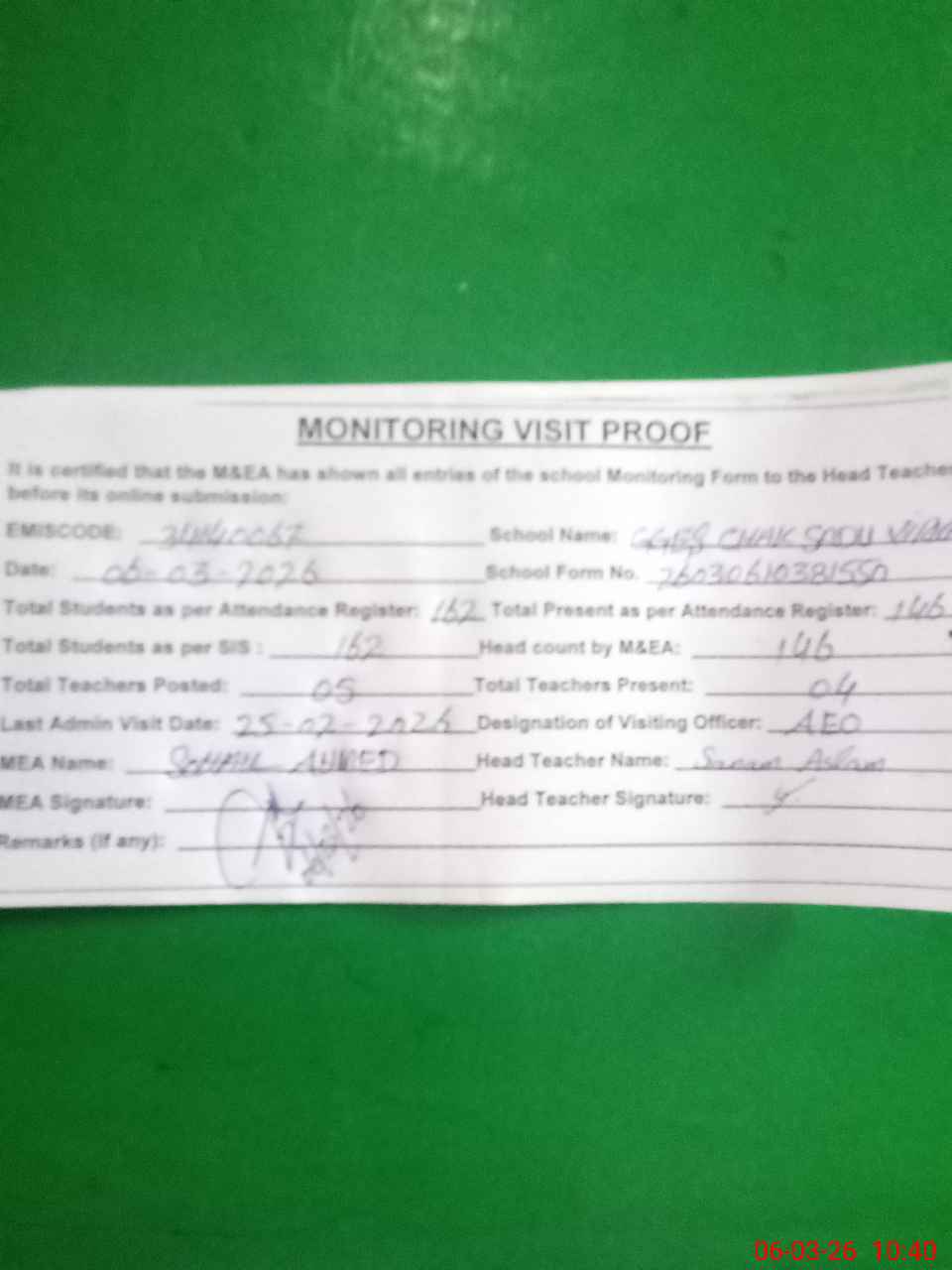 | EMIS Code: 34140067 | Name of School: GGES CHAK SADU VIRKAN | |||