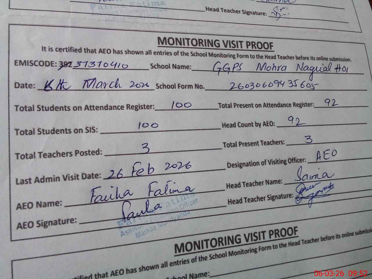 | EMIS Code: 37370410 | Name of School: GGPS MOHRA NAGRIAL NO.1 | |||