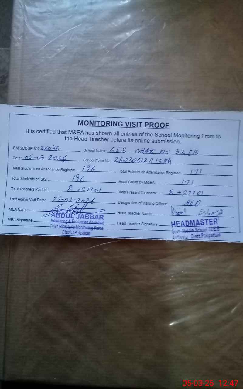 | EMIS Code: 39220045 | Name of School: GES CHAK NO. 32 / EB | |||