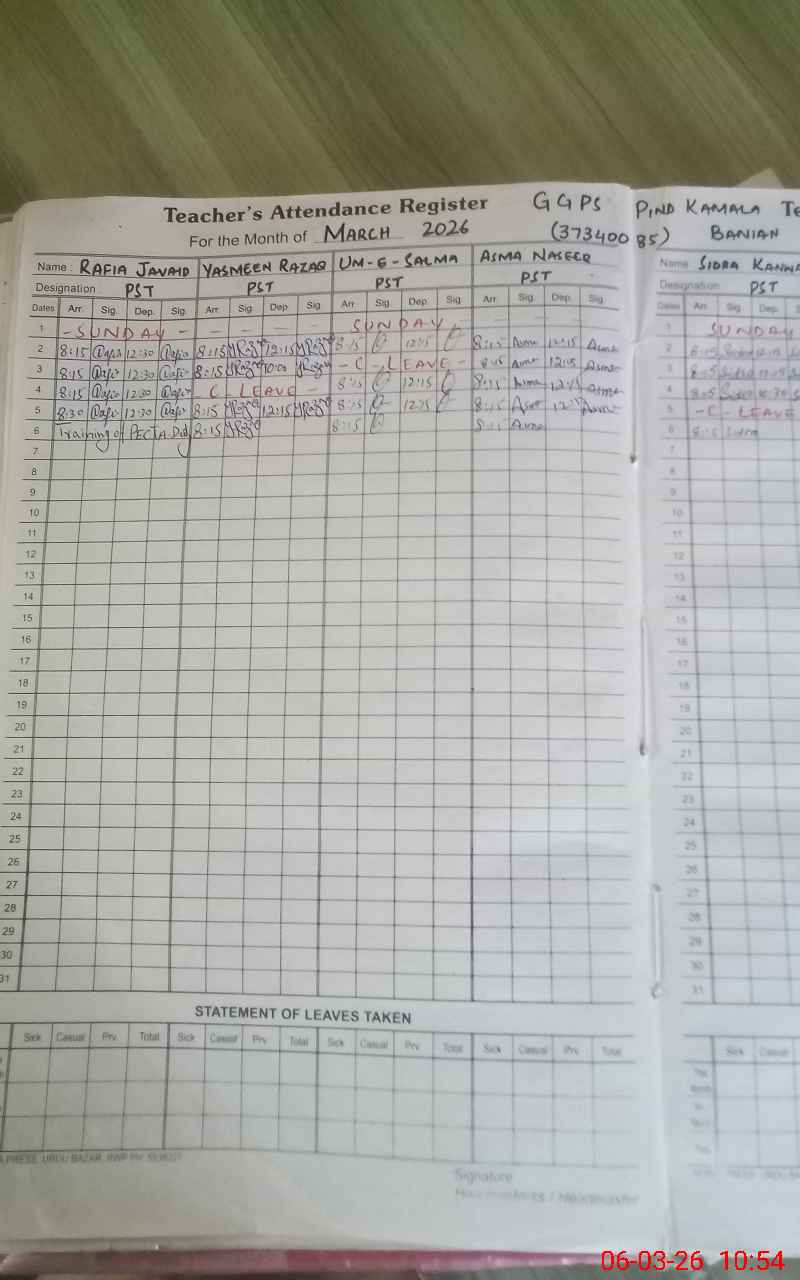 | 37**** | Ra**** Ja**** | PST Science/Maths | Regular | 0 | 0 | 0 | 0 | 0 | 0 | 0 | 0 | 0 | Exam Duty |