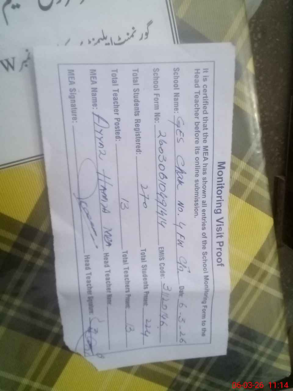 | EMIS Code: 31120146 | Name of School: GES CHAK 4/FW | |||