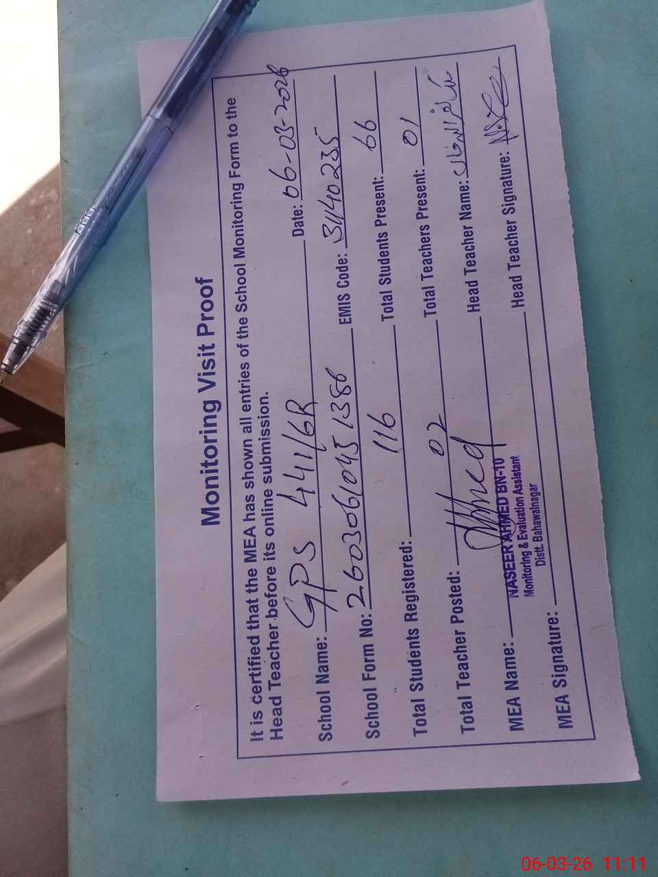 | EMIS Code: 31140235 | Name of School: GPS CHAK NO. 441/6-R | |||