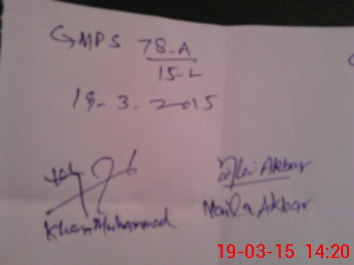 | EMIS Code: 36420695 | Name of School: GPMS 78-A/15-L, KACHA KHUH | |||