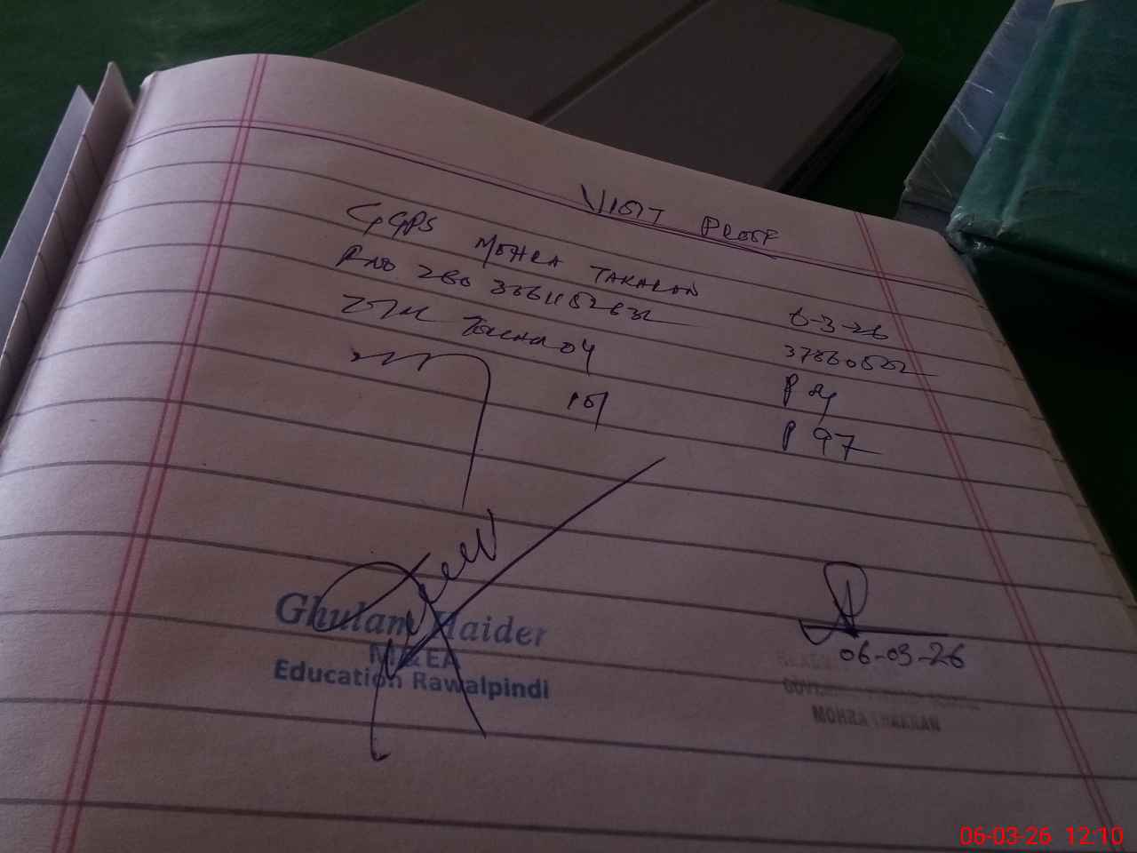 | Name: AB**** SH**** Designation: (School Headmaster's/Headmistress's) PST Phone/Cell Number: 03**** |