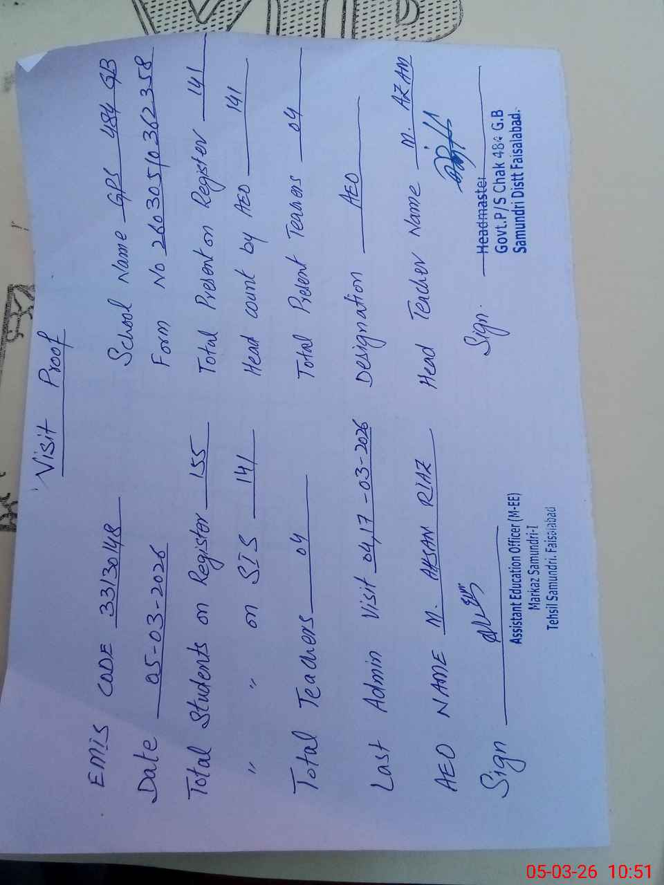 | EMIS Code: 33130148 | Name of School: GPS 484 GB | |||