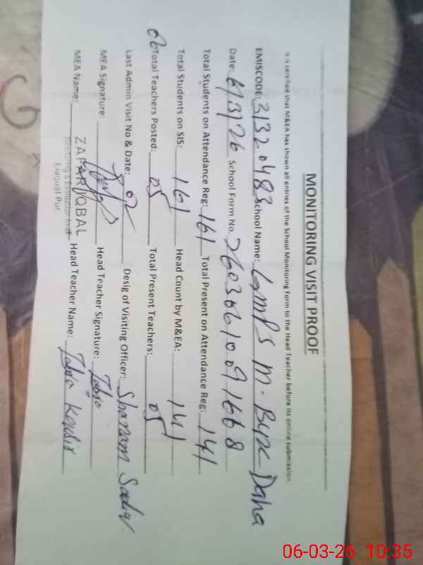 | EMIS Code: 31320483 | Name of School: GMPS MUHAMMAD BUX DAHA | |||