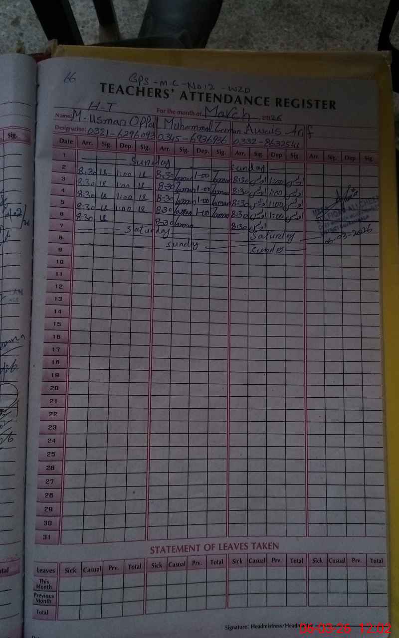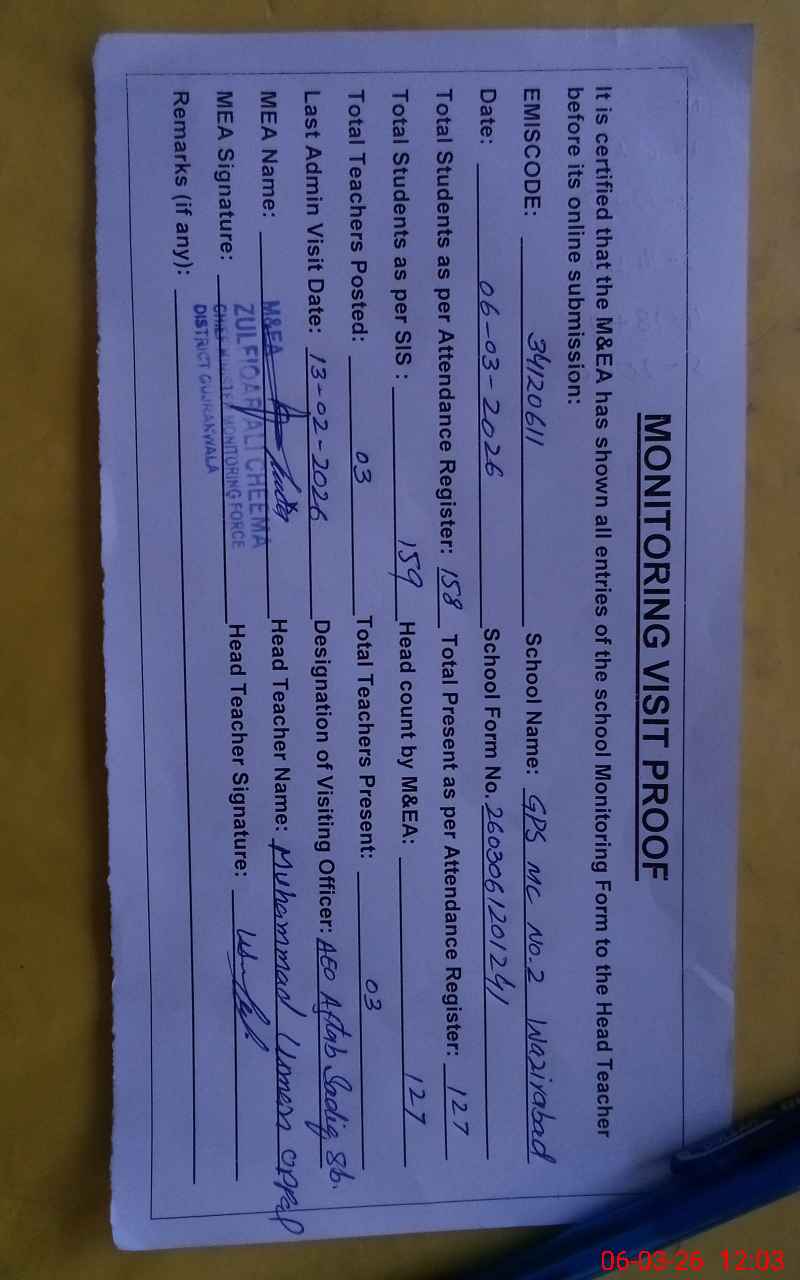 | EMIS Code: 34120611 | Name of School: GPS MC NO.02 WAZIRABAD | |||