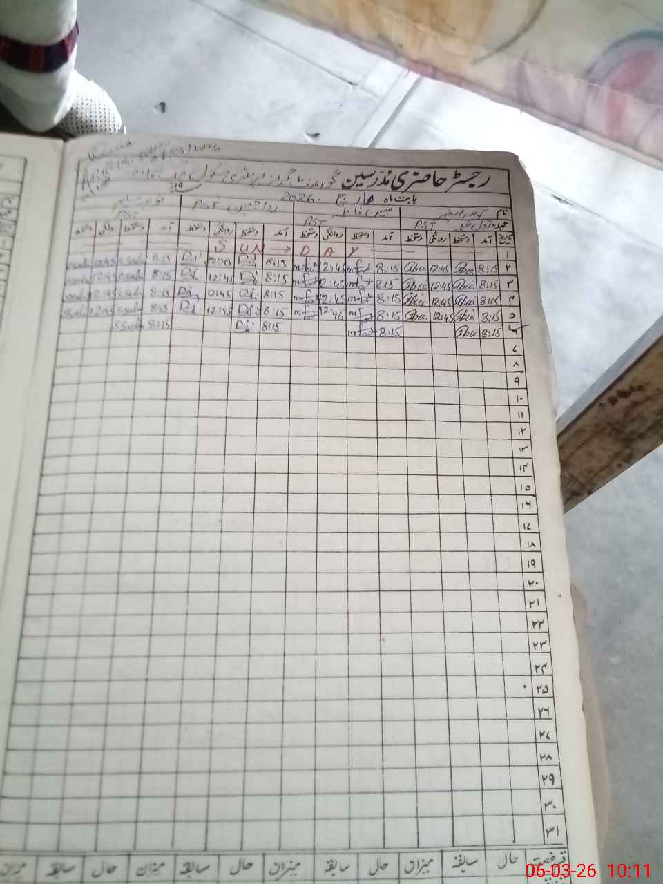 | CNIC | Full Name | Designation | R/C | Absence During Last Calender Month |