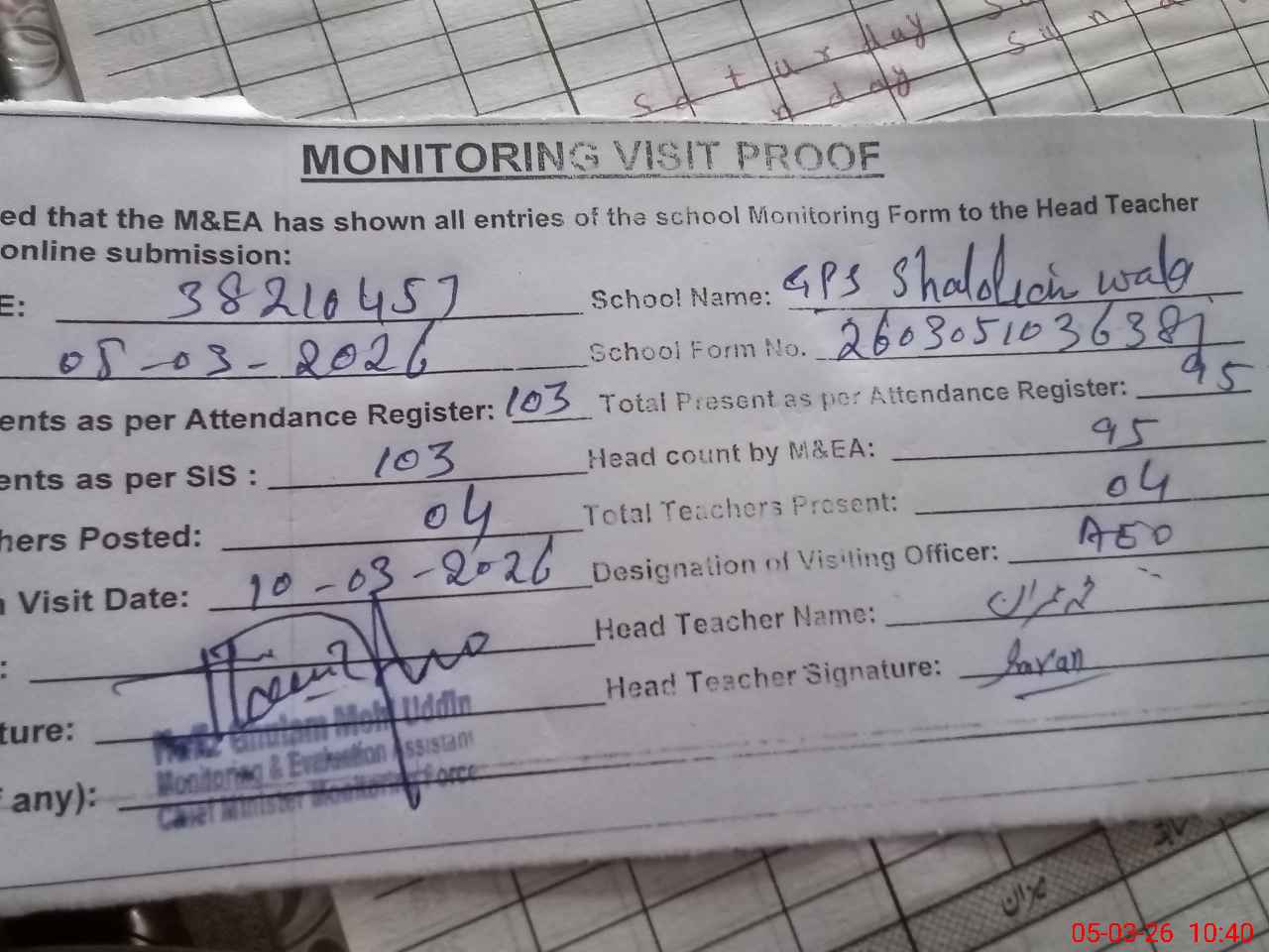 | EMIS Code: 38210457 | Name of School: GPS SHALOLIAN WALA | |||