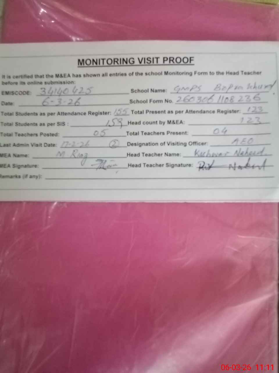 | EMIS Code: 34140425 | Name of School: GMPS BOOPRA KHURD | |||