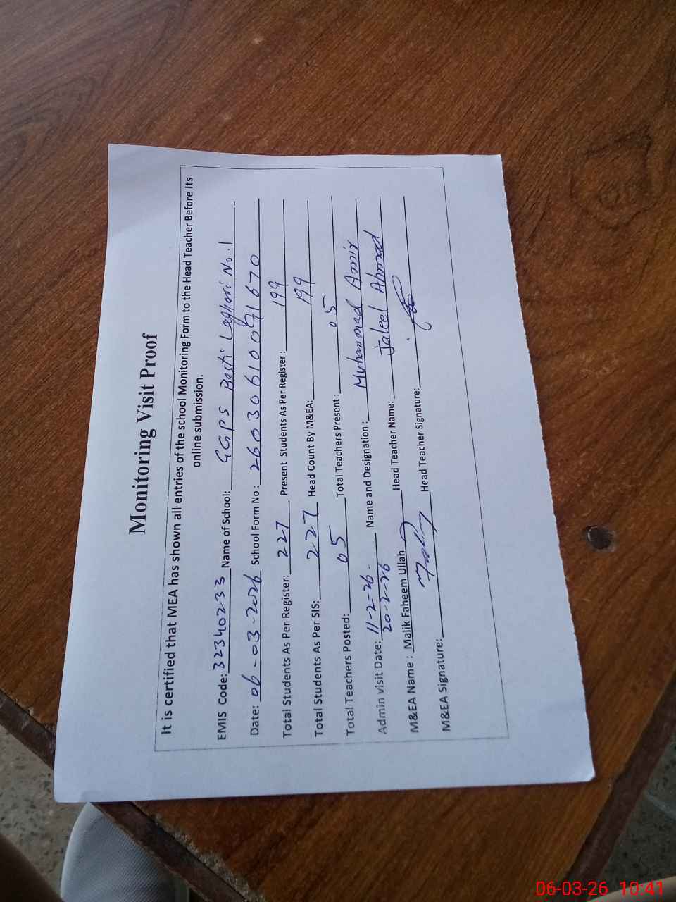 | EMIS Code: 32340233 | Name of School: GGPS BASTI LAGHARI NO. 1 | |||