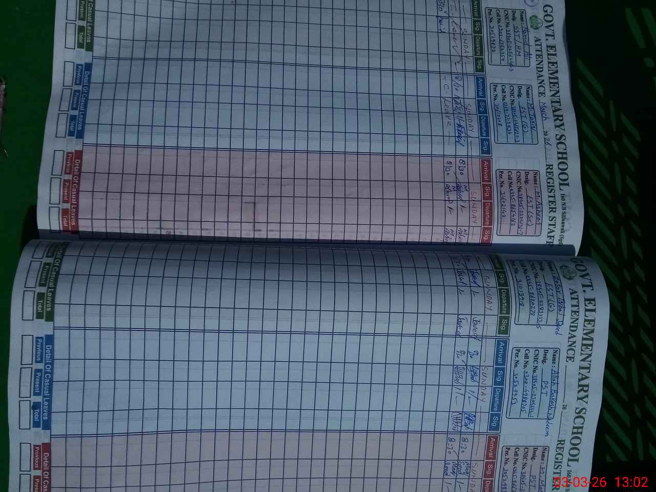 | CNIC | Full Name | Designation | R/C | Absence During Last Calender Month |