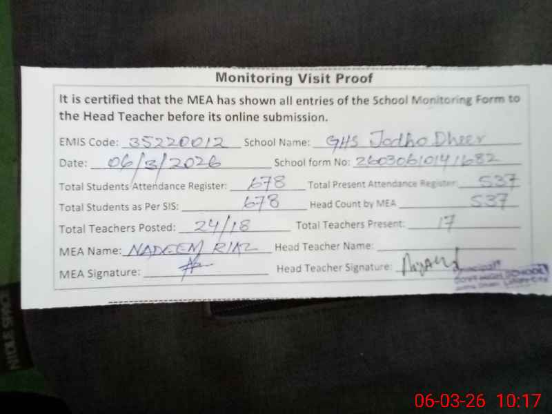 | EMIS Code: 35220012 | Name of School: GHS JODHO DHEER | |||