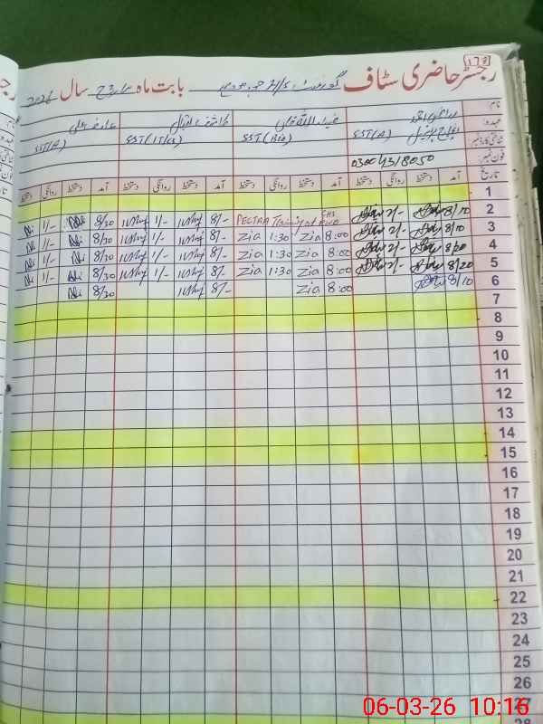 | CNIC | Full Name | Designation | R/C | Absence During Last Calender Month |