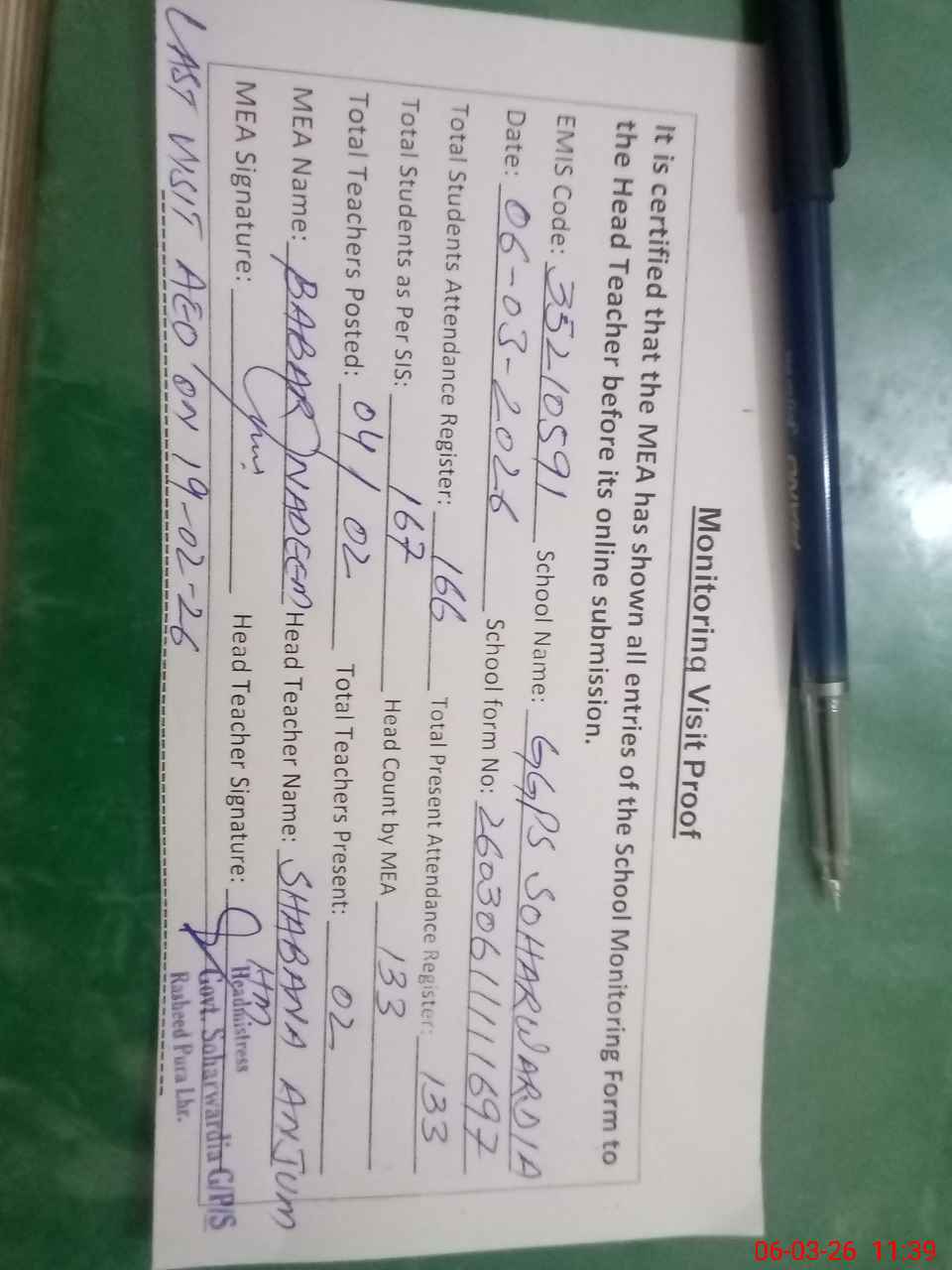 | EMIS Code: 35210591 | Name of School: GGPS SOHARWARDIA | |||