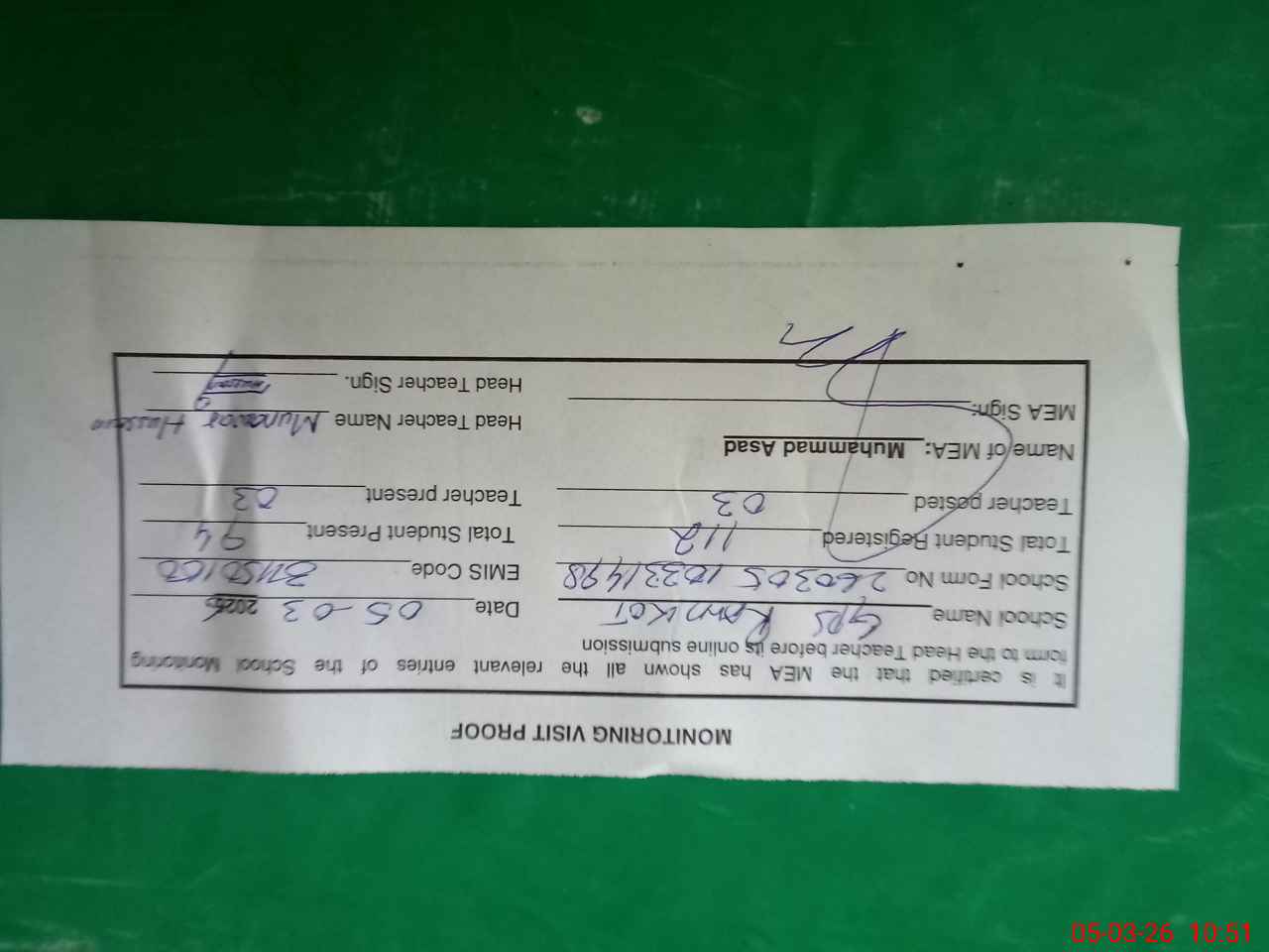 | EMIS Code: 31150100 | Name of School: GPS RAMKOT | |||