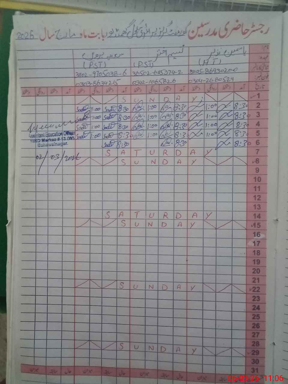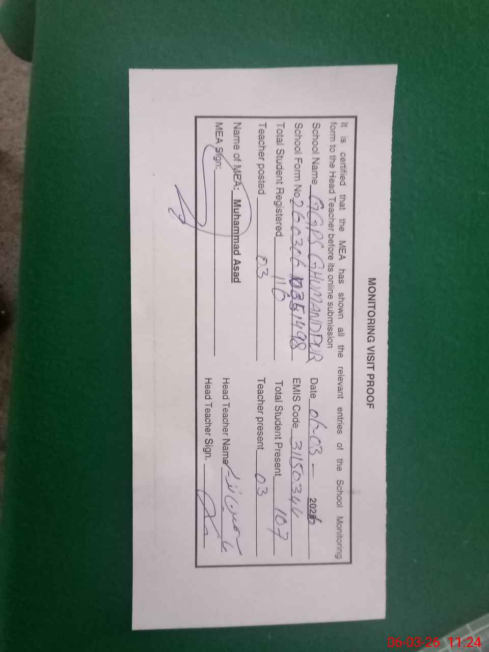 | EMIS Code: 31150344 | Name of School: GGPS GHUMAND PUR | |||