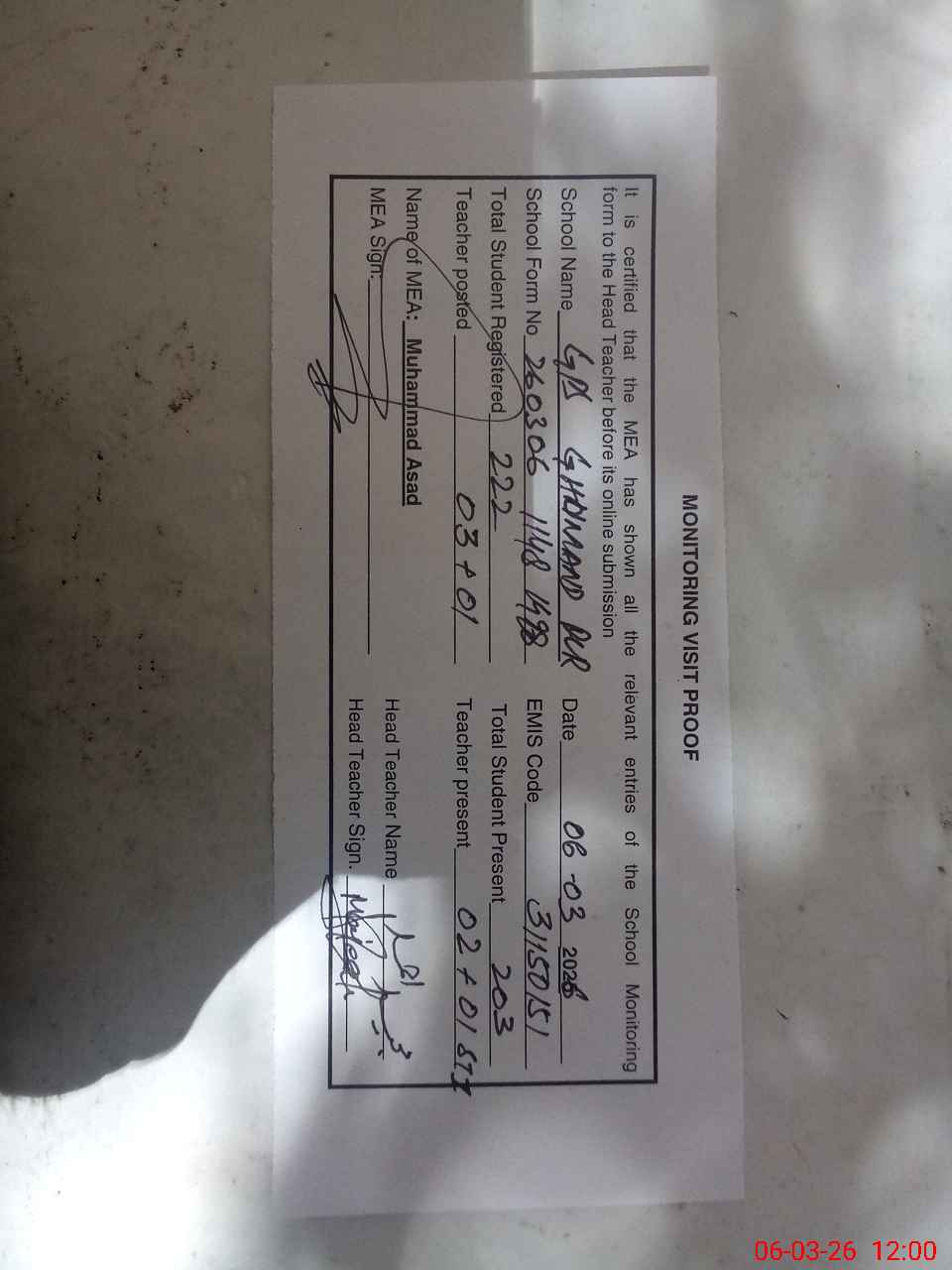 | EMIS Code: 31150151 | Name of School: GPS GHAMANDPUR | |||