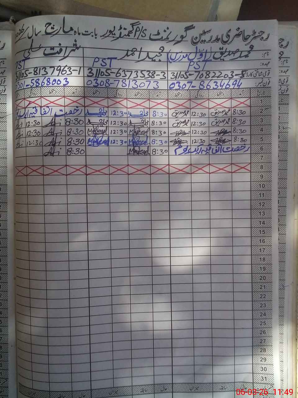 | Name: MU**** Sa**** Designation: (School Headmaster's/Headmistress's) PST Phone/Cell Number: 03**** |
