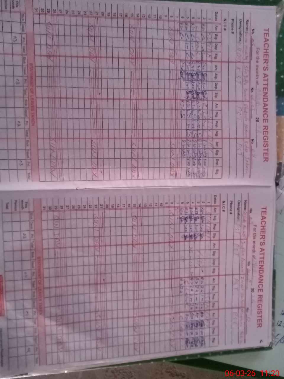 | CNIC | Full Name | Designation | R/C | Absence During Last Calender Month |