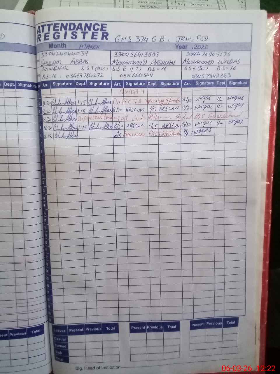 | Name: GH**** AB**** Designation: (School Headmaster's/Headmistress's) SST (Bio) Phone/Cell Number: 03**** |