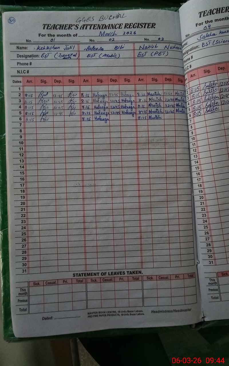 | Name: SH**** FA**** Designation: (School Headmaster's/Headmistress's) S.S.T.(SC) Phone/Cell Number: 03**** |