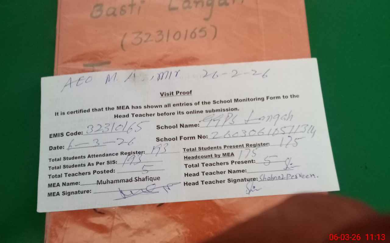 | EMIS Code: 32310165 | Name of School: GGPS BASTI LANGAH | |||