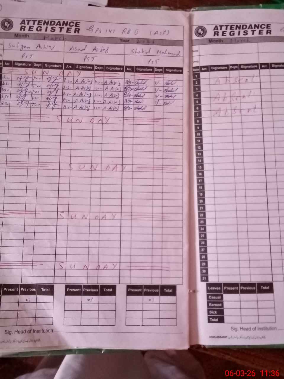 | 35**** | Ha**** Ra**** | PST Arts | Regular | 0 | 0 | 0 | 0 | 0 | 0 | 0 | 0 | 0 | Absent (Un-Authorized) |