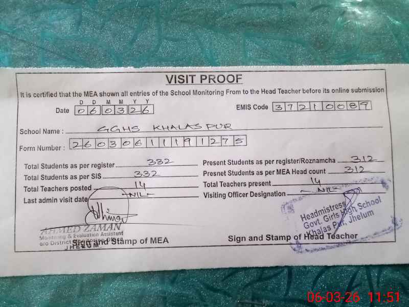 | EMIS Code: 37210089 | Name of School: GGHS KHALAS PUR | |||