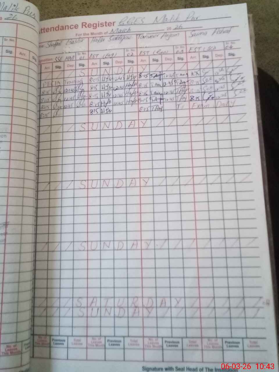 | Name: Sh**** Ba**** Designation: (School Headmaster's/Headmistress's) S.S.T.(genral) Phone/Cell Number: 03**** |