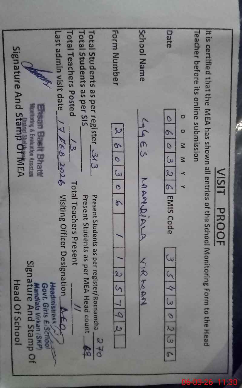| EMIS Code: 35430236 | Name of School: GGES MANDIALA VIRKAN | |||