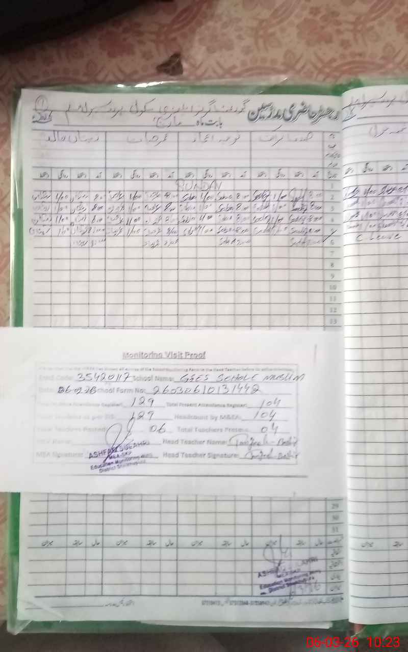 | Attendance Register | Head Teacher | MEA with School | Visit Proof |