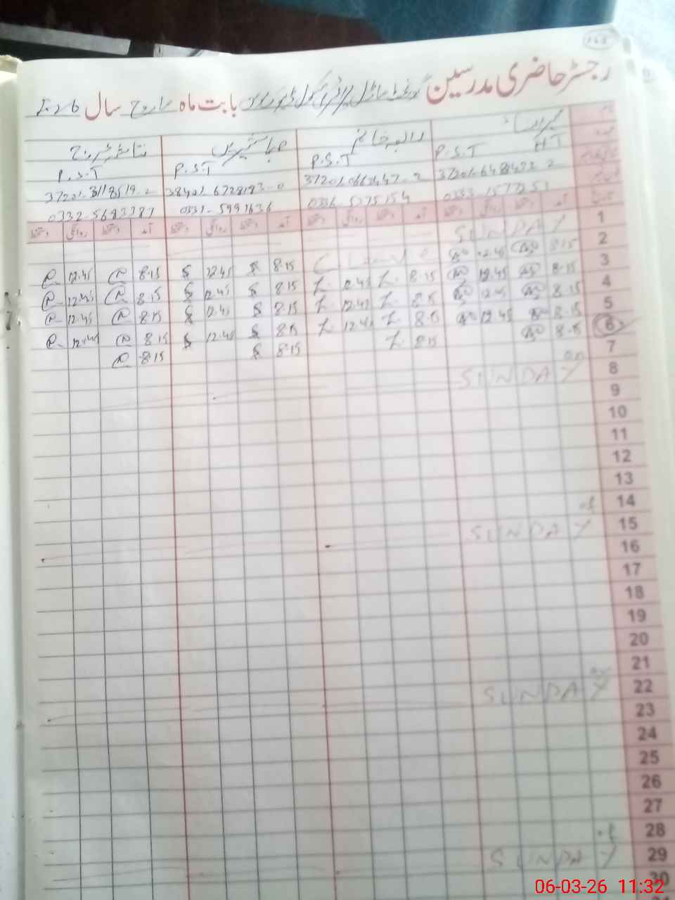 | CNIC | Full Name | Designation | R/C | Absence During Last Calender Month |