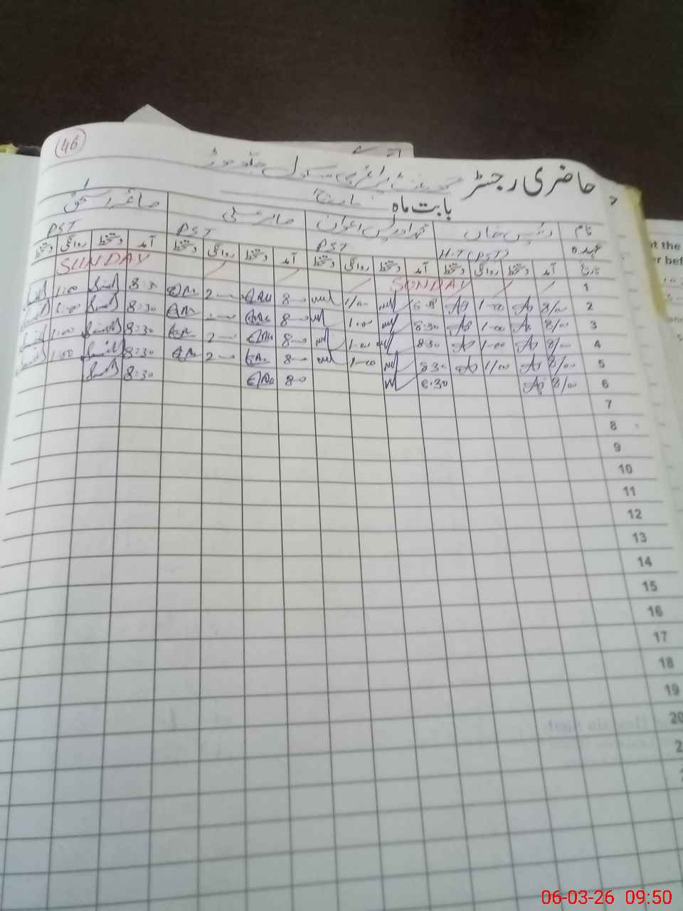 | CNIC | Full Name | Designation | R/C | Absence During Last Calender Month |