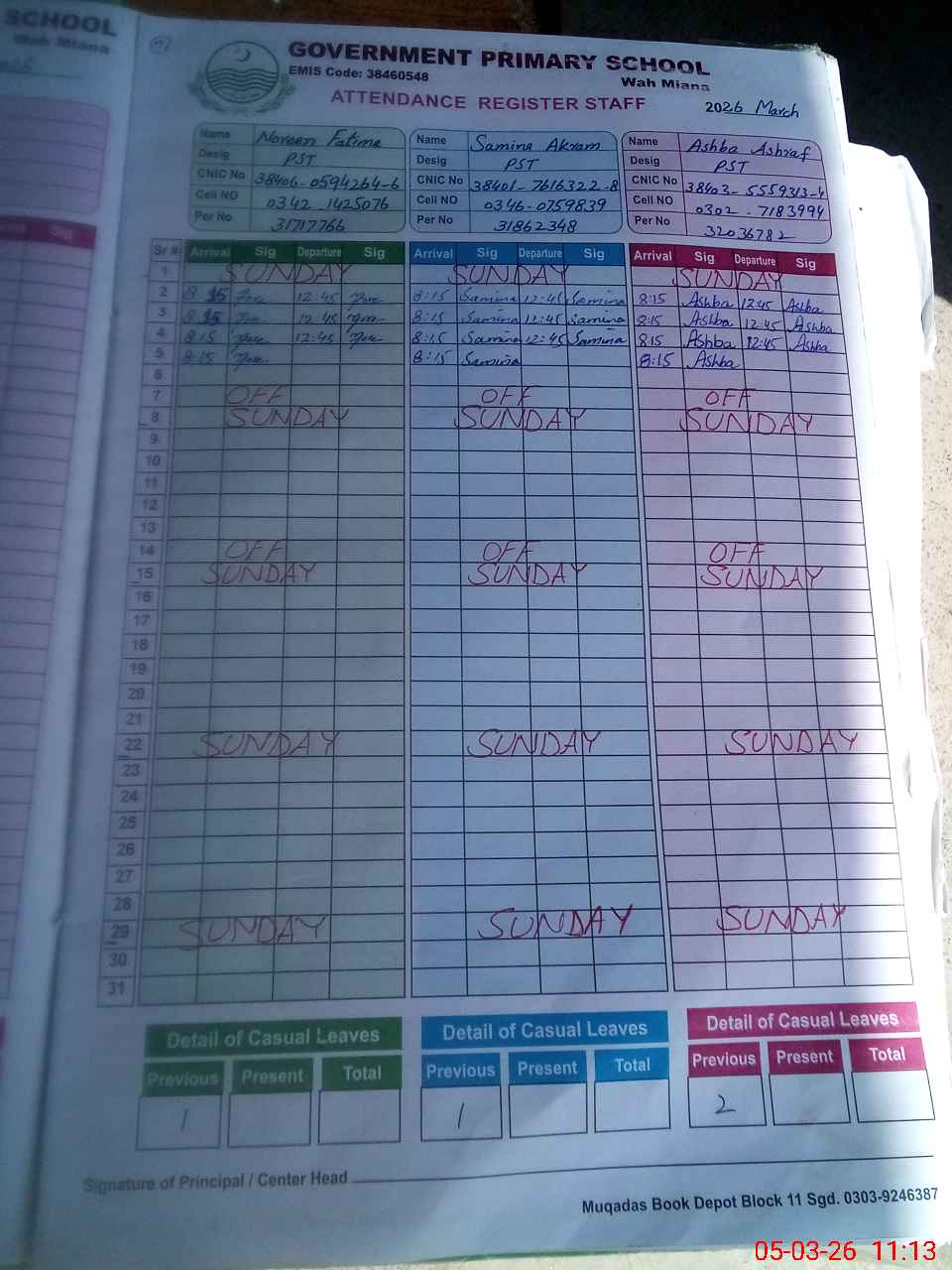 | Name: NO**** FA**** Designation: (School Headmaster's/Headmistress's) PST Phone/Cell Number: 03**** |
